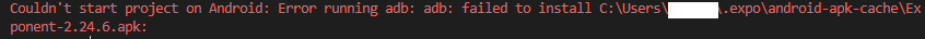 Couldn't start project on Android: Error running adb: adb: failed to install {경로}Exponent=2.24.6.apk
