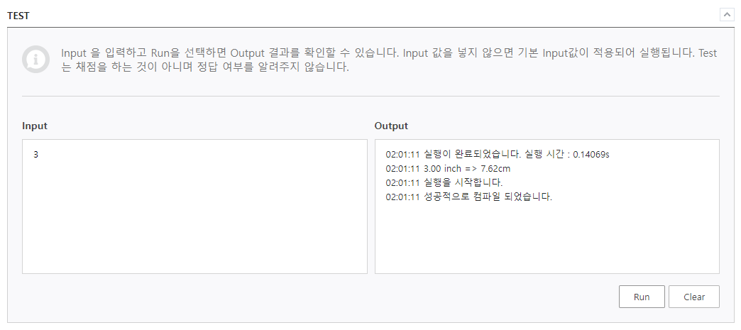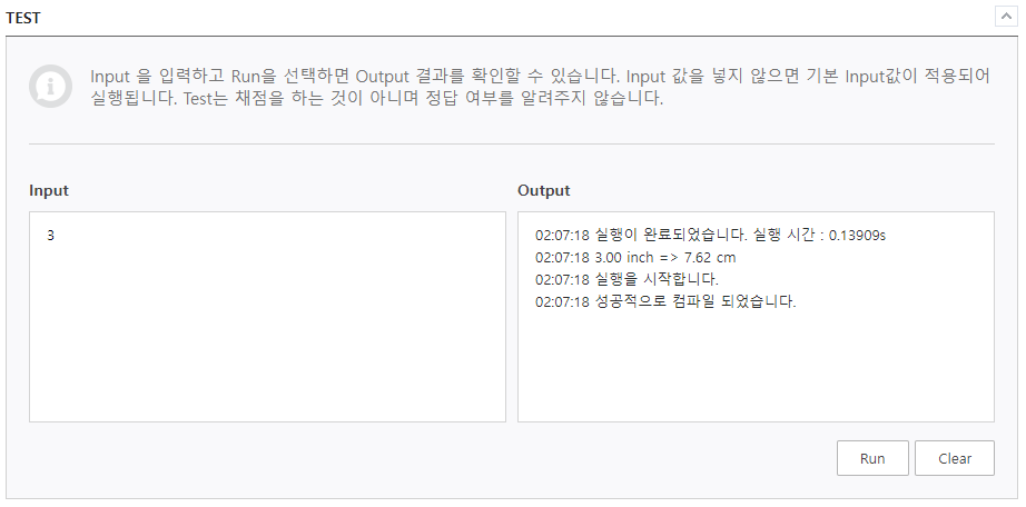 다시 꼼꼼히 문제를 읽었더니, 입력값 3이 출력값에는 3.00으로 나왔길래 부동소수점을 검색했고 소수점 2자리를 뱉게; 하려면 %.2f 을 넣길래 넣어봄. 파이참에서는 답이 잘 나왔음. 근데 또 안 돼ㅋㅋㅋㅋㅋ
