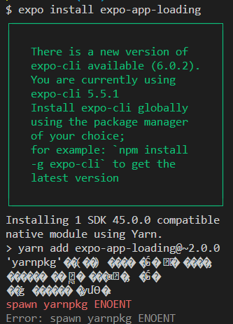 expo-app-loading을 설치하는데 다음과 같은 오류가 떴다